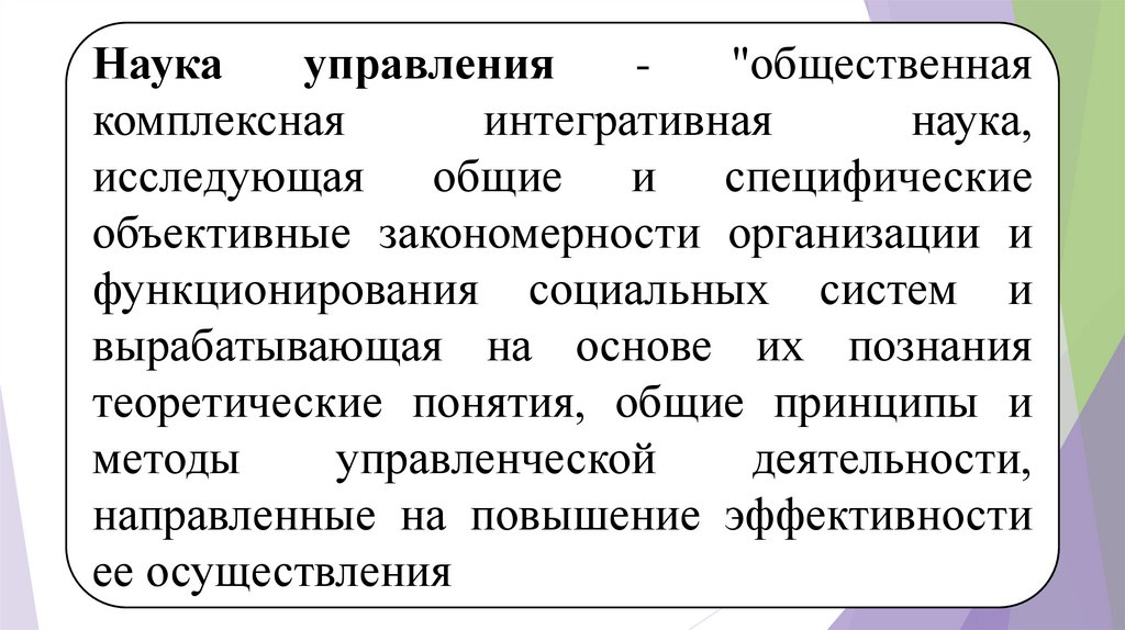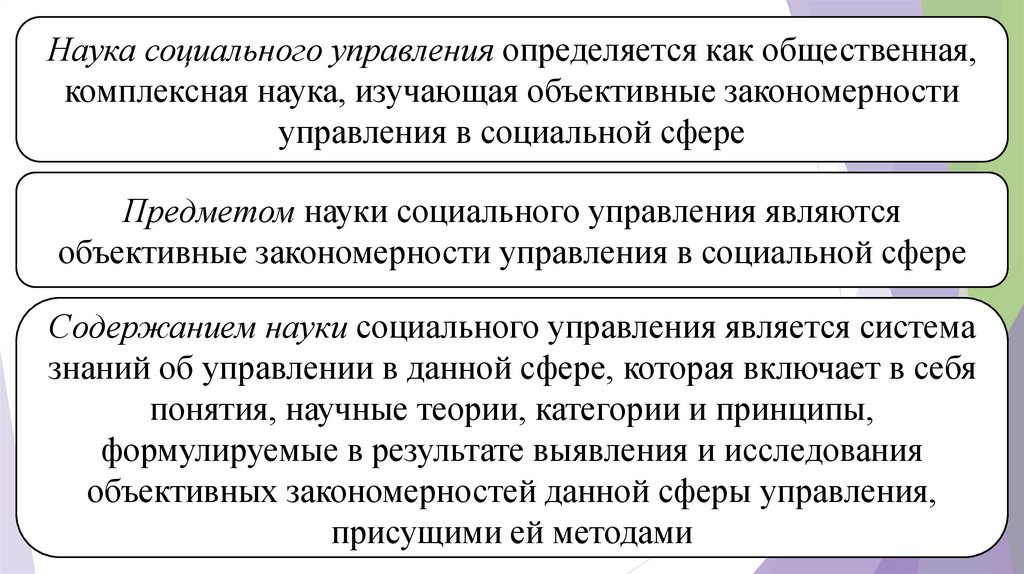 Наука социального управления определяется как общественная,комплексная наука, изучающая объективные закономерности