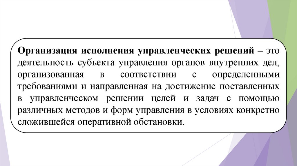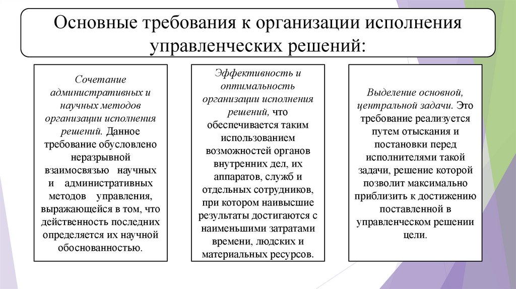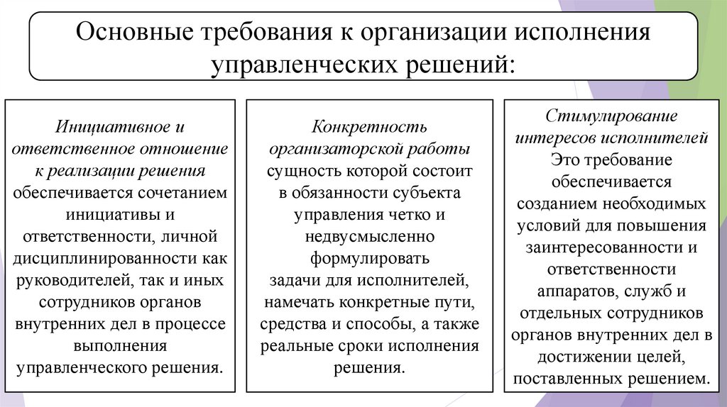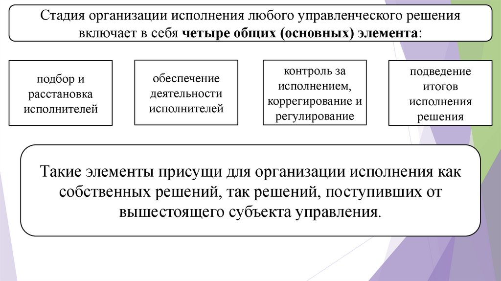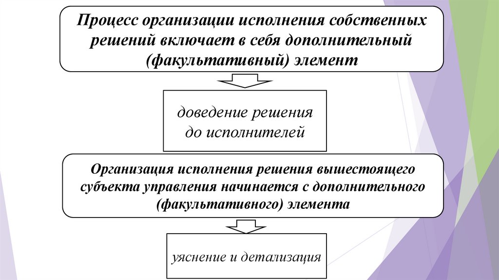 Процесс организации исполнения собственныхрешений включает в себя дополнительный