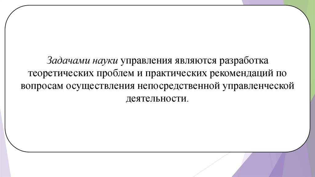 Задачами науки управления являются разработкатеоретических проблем и практических рекомендаций по
