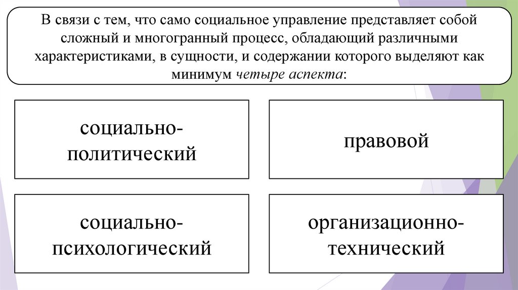 В связи с тем, что само социальное управление представляет собойсложный и многогранный процесс, обладающий различными