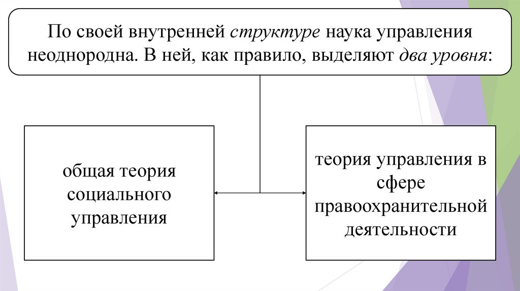 По своей внутренней структуре наука управлениянеоднородна. В ней, как правило, выделяют два уровня: