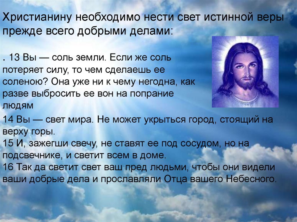Христианину необходимо нести свет истинной верыпрежде всего добрыми делами: