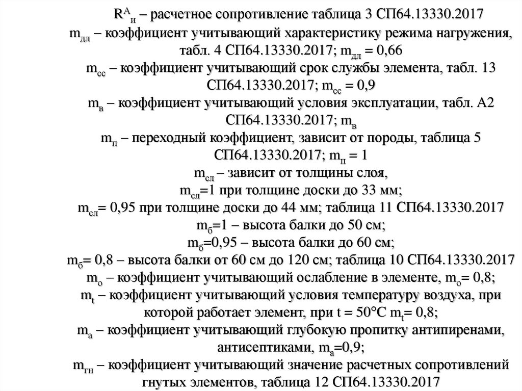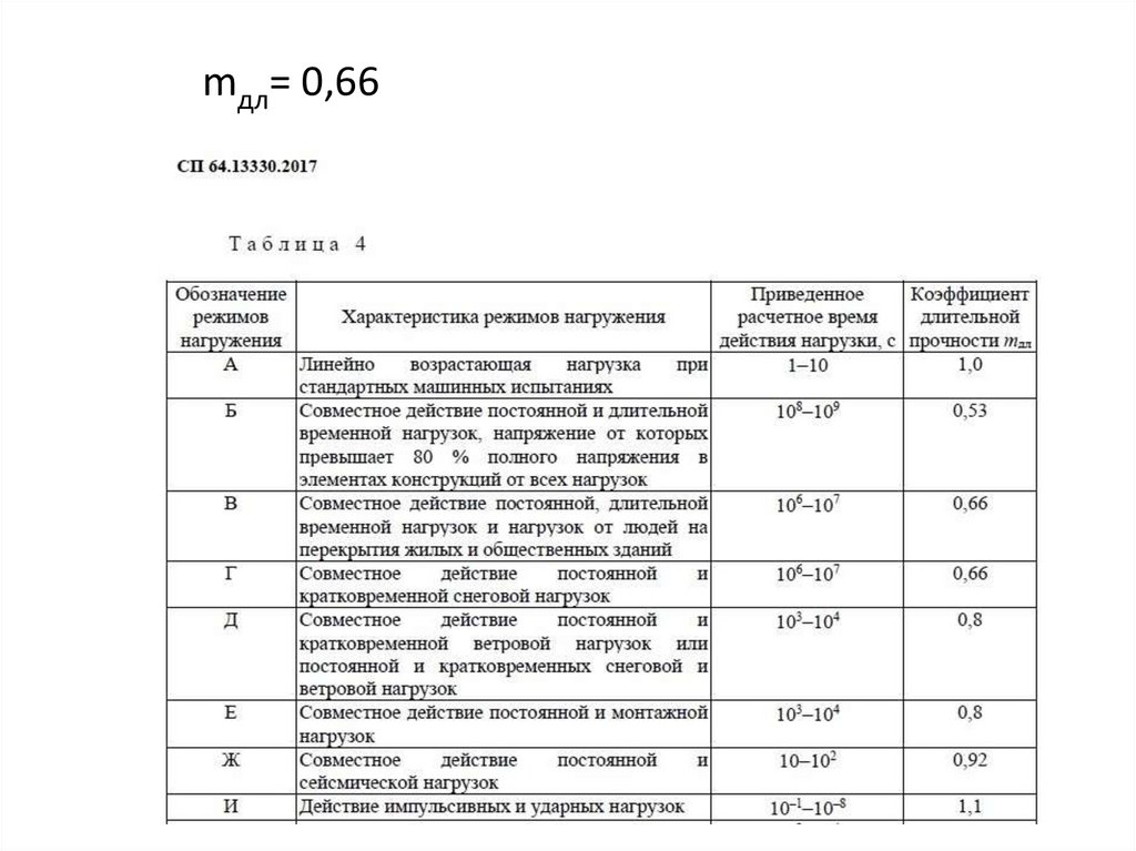 RАи – расчетное сопротивление таблица 3 СП64.13330.2017mдл – коэффициент учитывающий характеристику режима нагружения, табл. 4