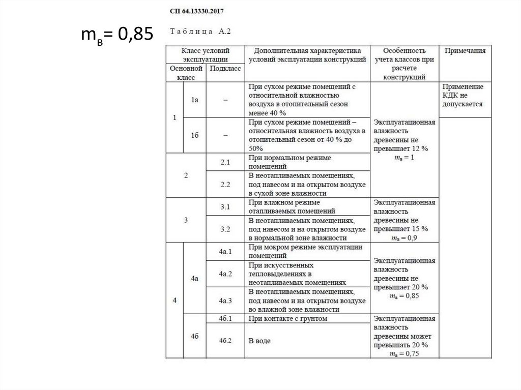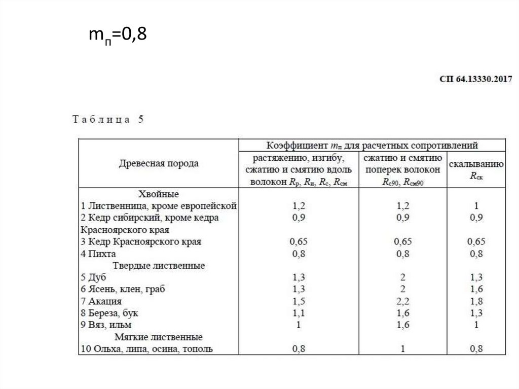 mсл= 0,95 при толщине доски до 44 мм; таблица 11 СП64.13330.2017