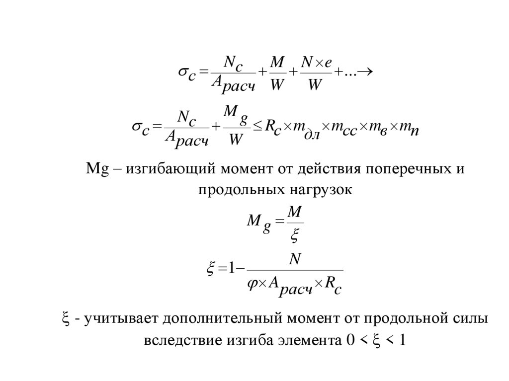 - учитывает дополнительный момент от продольной силы