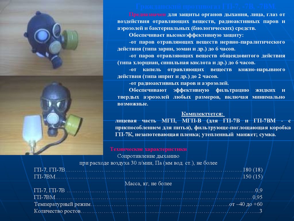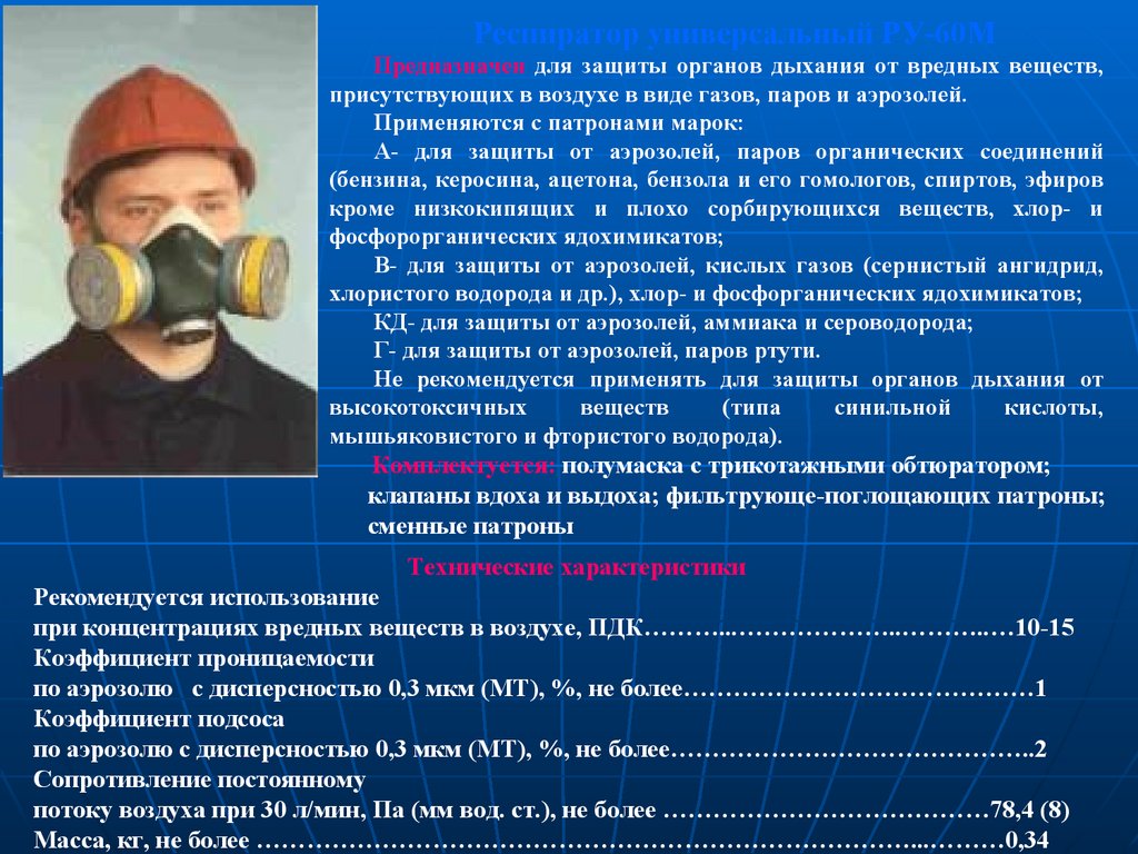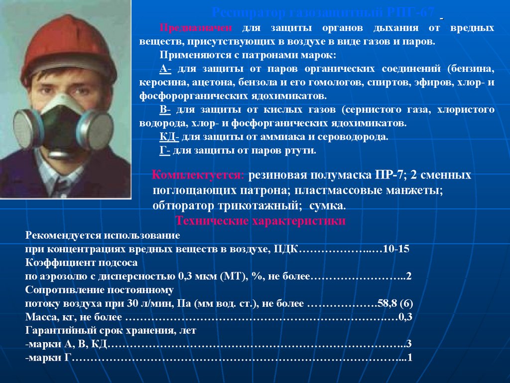 • фильтрующие противогазы