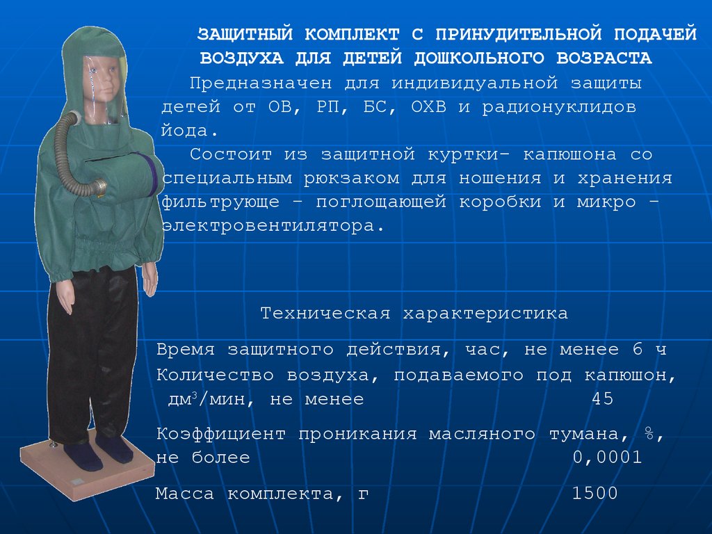 ЗАЩИТНЫЙ КОМПЛЕКТ С ПРИНУДИТЕЛЬНОЙ ПОДАЧЕЙВОЗДУХА ДЛЯ ДЕТЕЙ ДОШКОЛЬНОГО ВОЗРАСТА