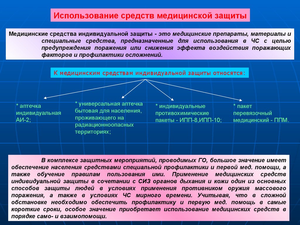 также обучение правилам пользования ими. Применение медицинских средств