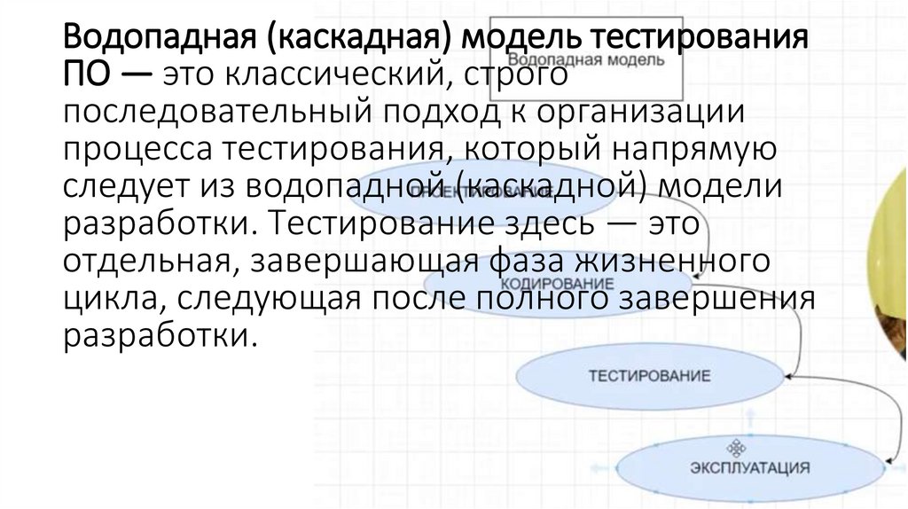 Водопадная (каскадная) модель тестированияПО — это классический, строго