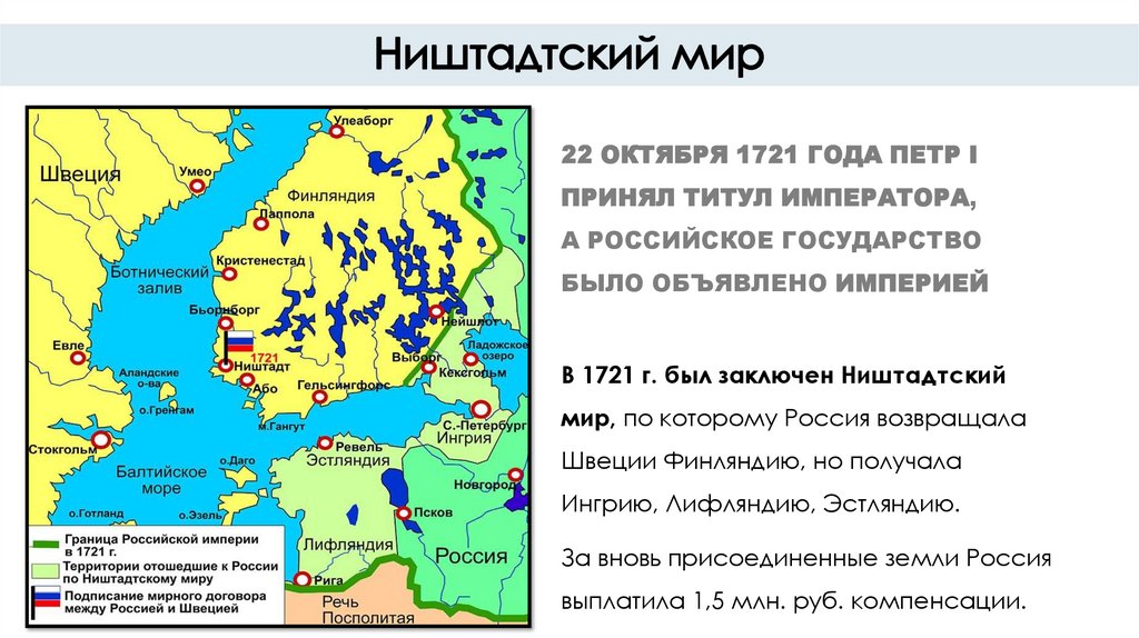 В 1721 г. был заключен Ништадтский