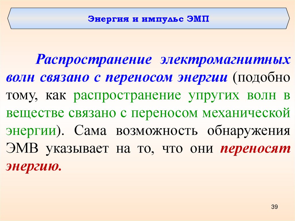 электромагнитных волн. Энергия и импульс волны.