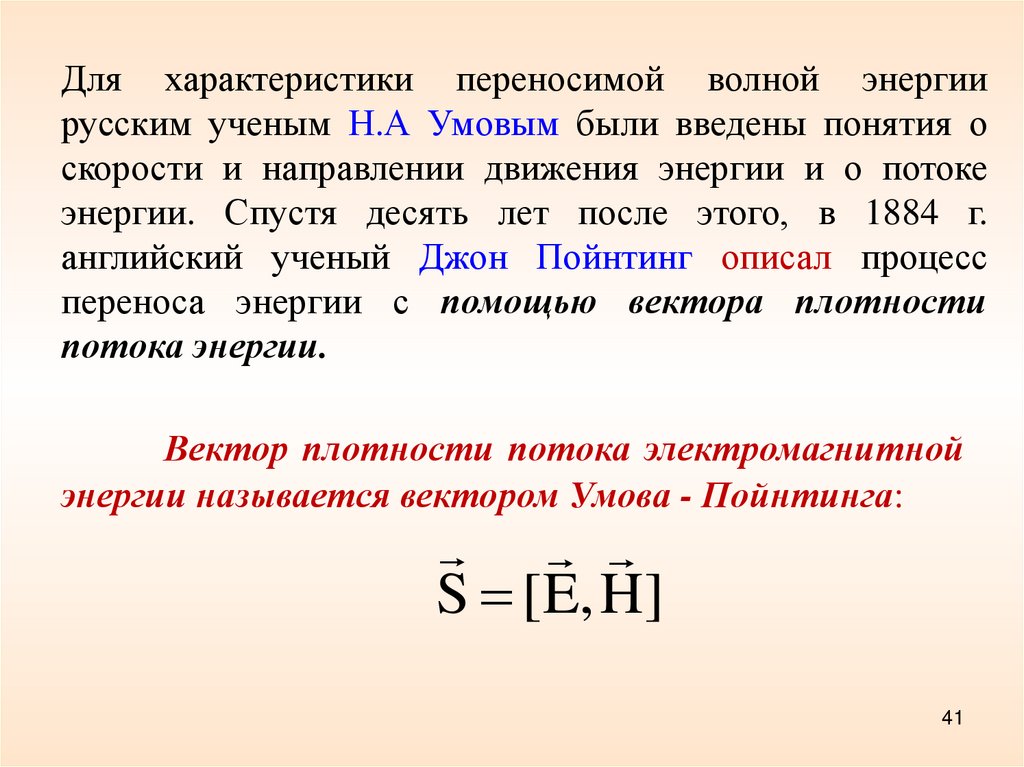 энергии называется вектором Умова - Пойнтинга: