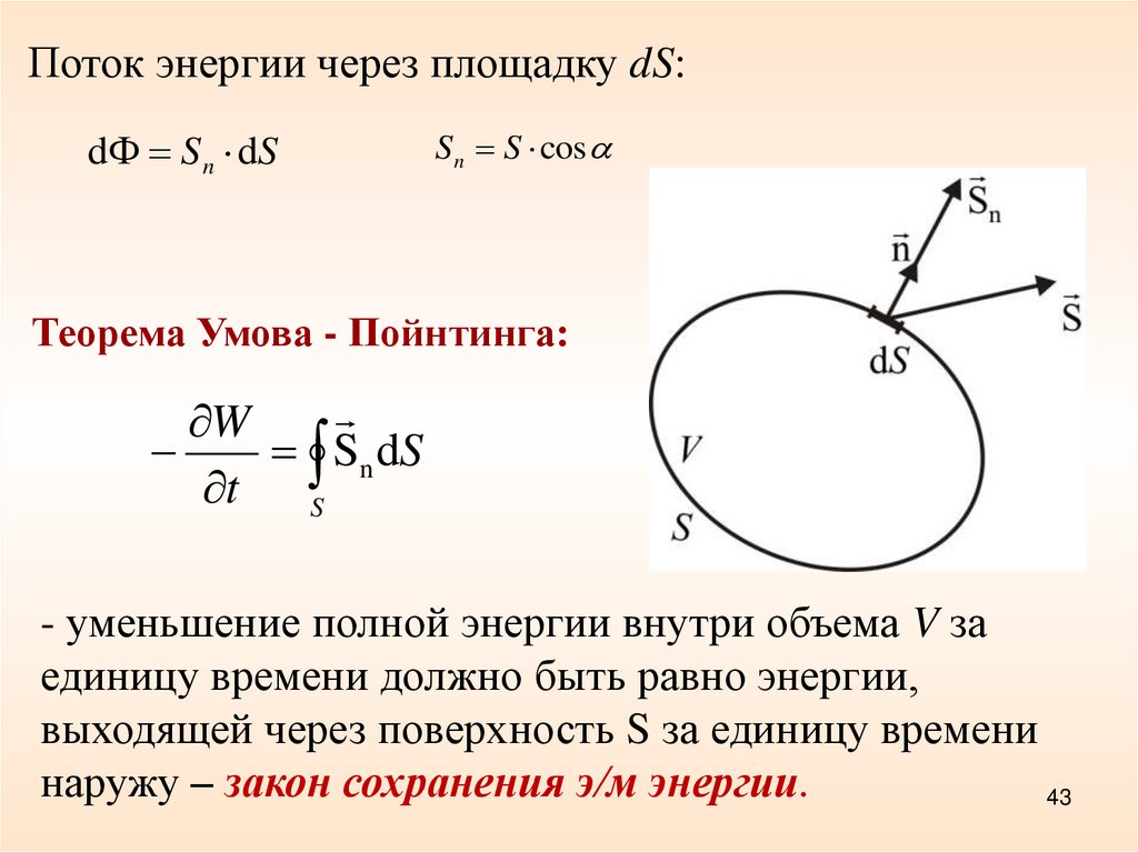 Поток энергии через площадку dS:d S n dS