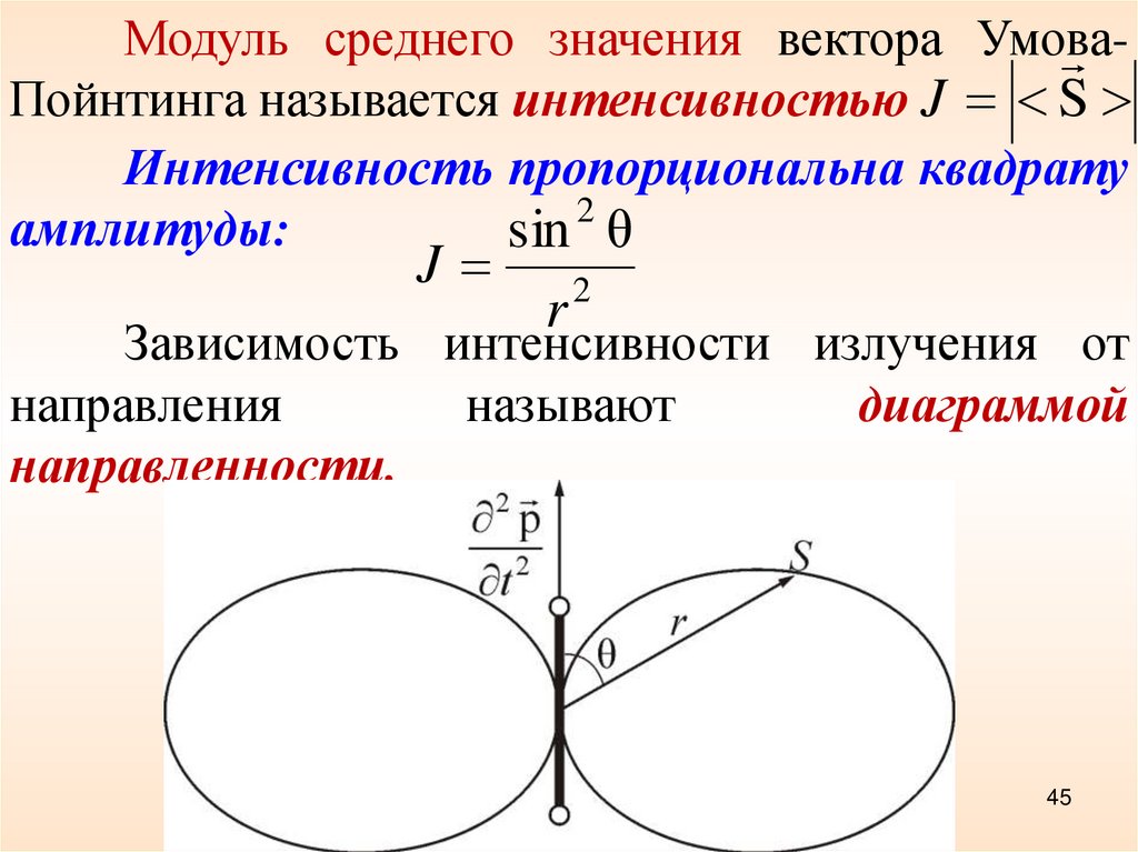 Модуль среднего значения вектора УмоваПойнтинга называется интенсивностью J S
