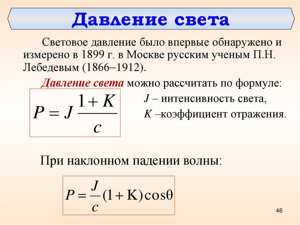 Давление света можно рассчитать по формуле: