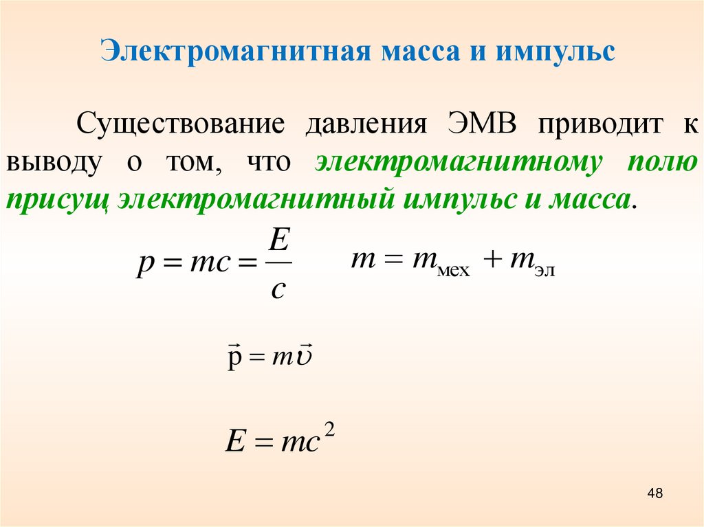 Электромагнитная масса и импульсСуществование давления ЭМВ приводит к