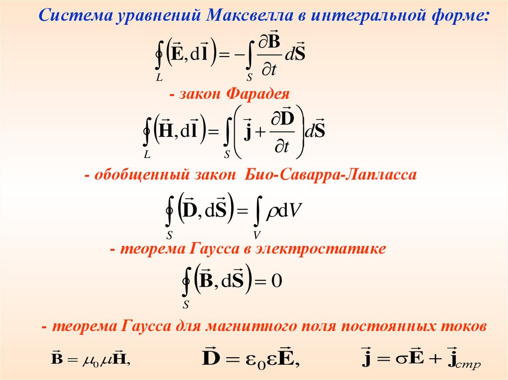 Система уравнений Максвелла в интегральной форме:B