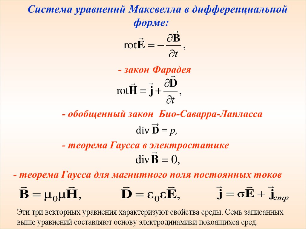 уравнений (уравнения Максвелла), выражающих все