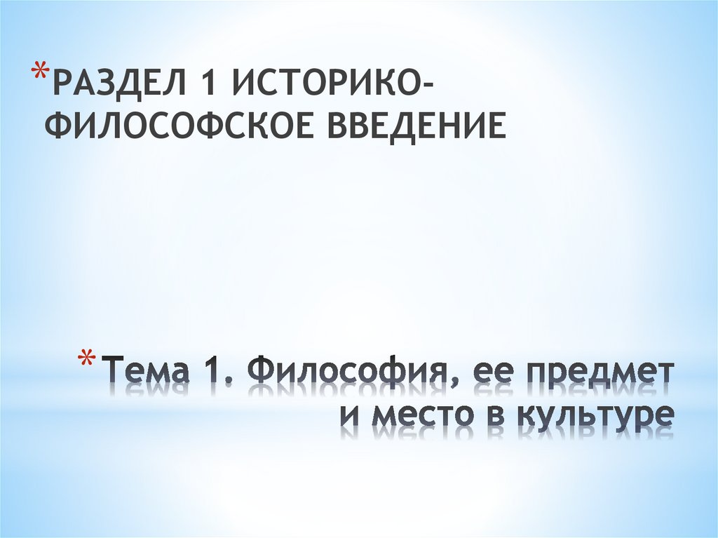 *РАЗДЕЛ 1 ИСТОРИКО-ФИЛОСОФСКОЕ ВВЕДЕНИЕ