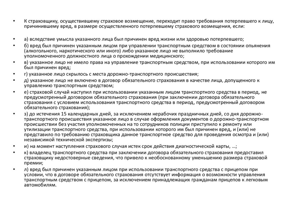 м) причинения вреда жизни, здоровью, имуществу пассажиров при их перевозке, если этот вред
