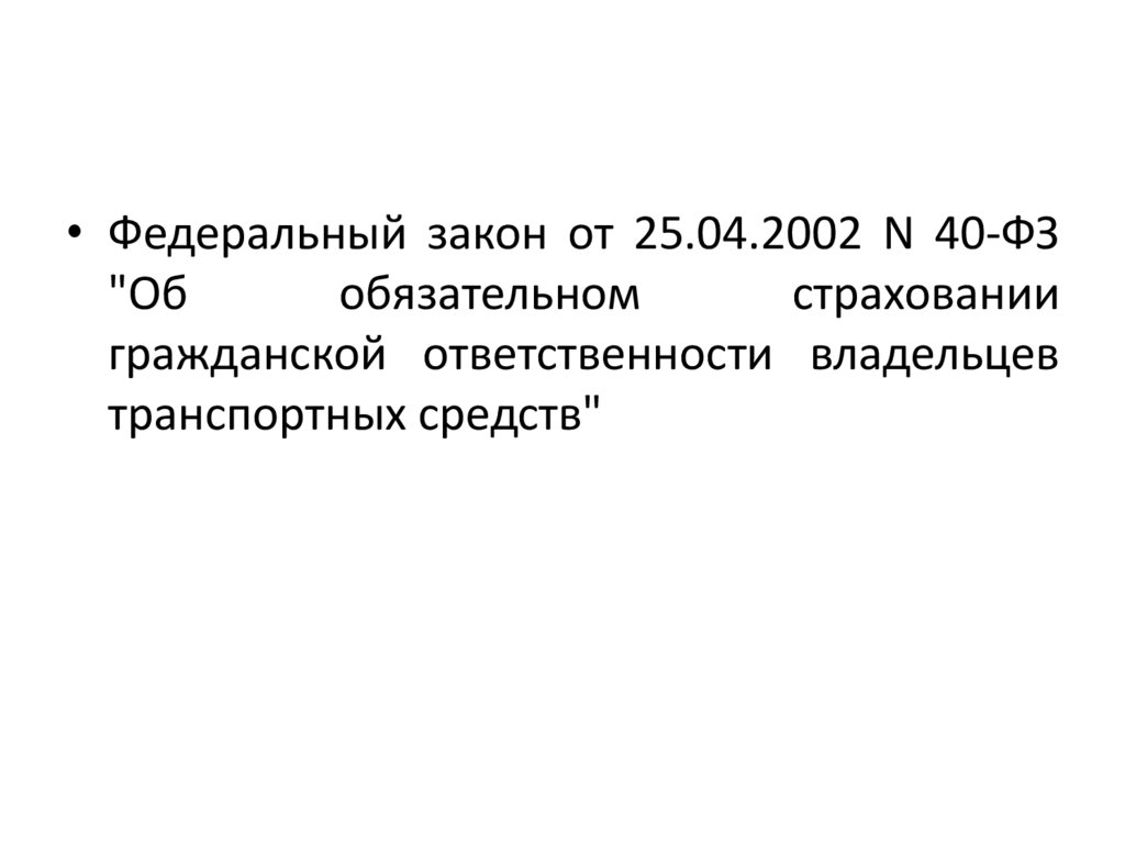 • Федеральный закон от 25.04.2002 N 40-ФЗ"Об