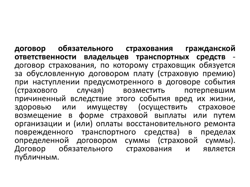договор обязательного страхования гражданскойответственности владельцев транспортных средств договор страхования, по которому страховщик обязуется