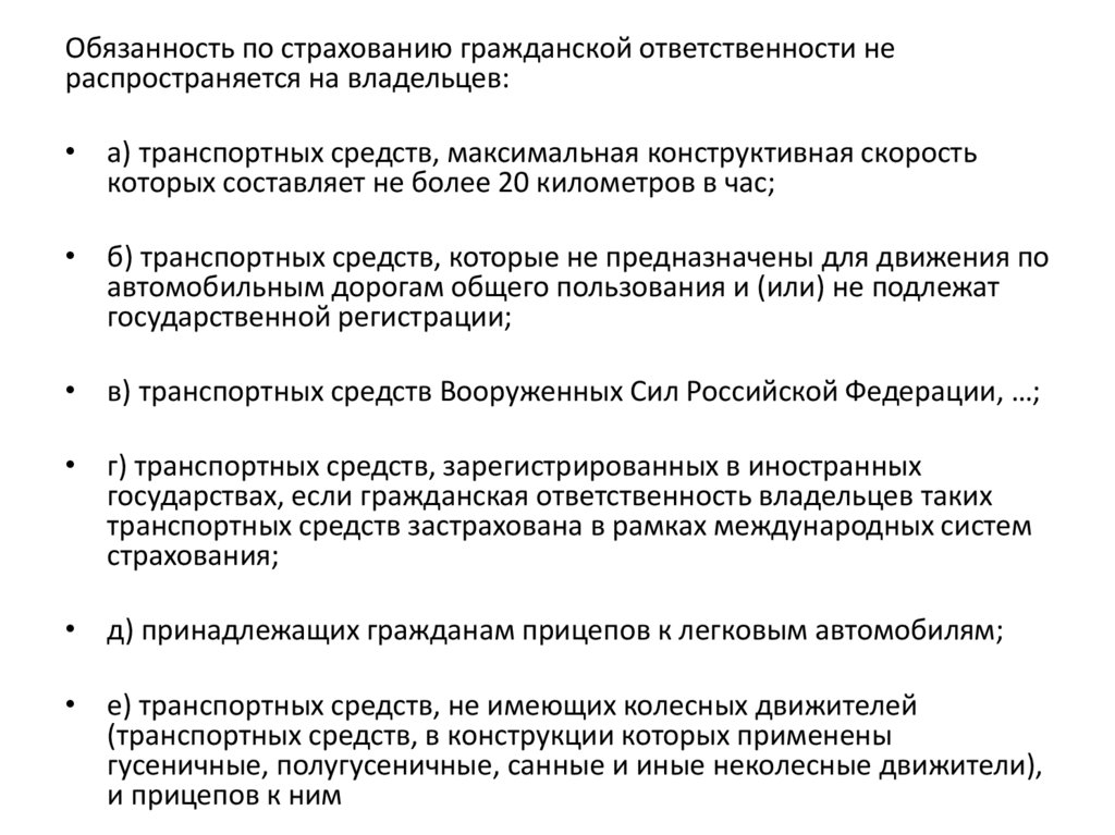 Обязанность по страхованию гражданской ответственности нераспространяется на владельцев: