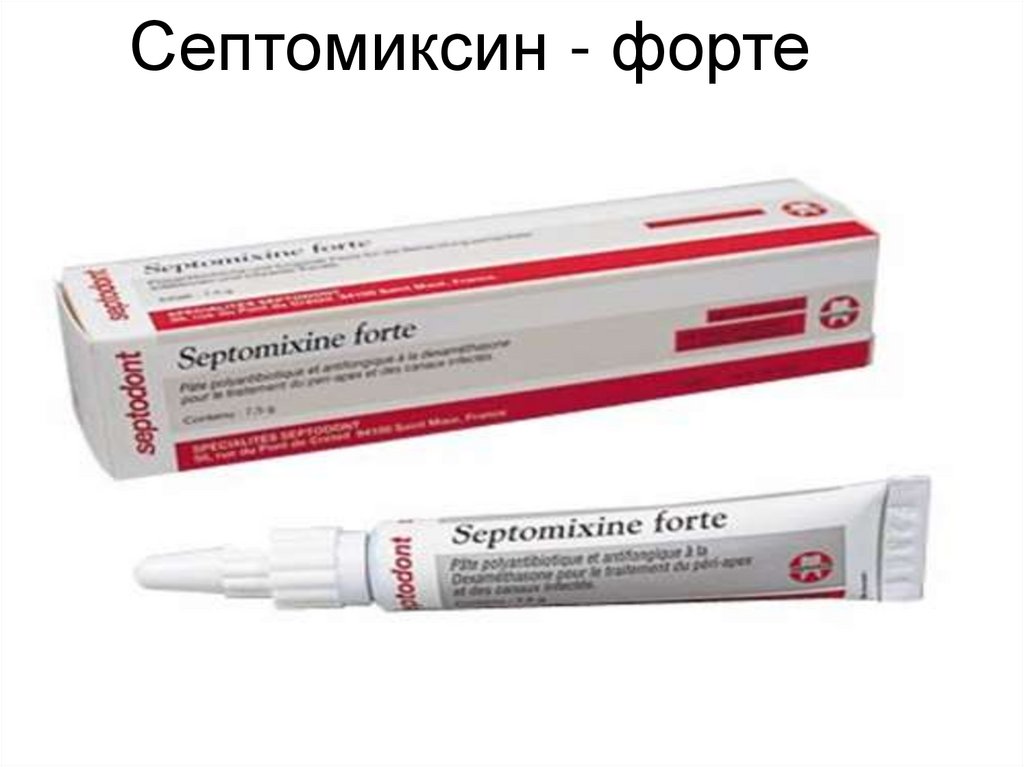 3) пасты на основе резорцин- или фенолформа линовой смеси: Форедент, Форфенан, N2, Резодент, Эндоформ, Резопласт, РФП;