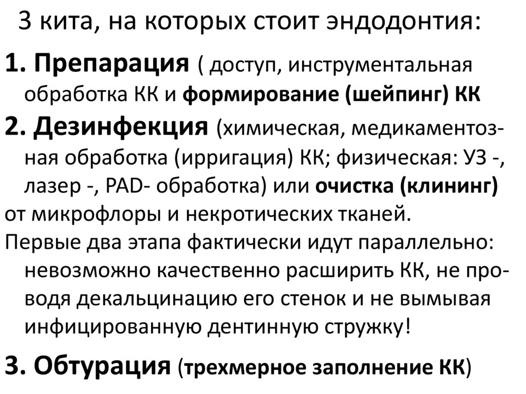 3 кита, на которых стоит эндодонтия:1. Препарация ( доступ, инструментальная