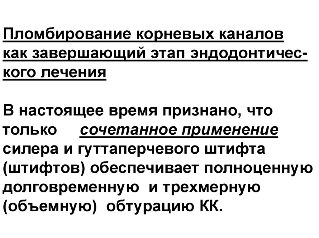 Современные методы пломбирования ККоснованы на применении твердеющих паст