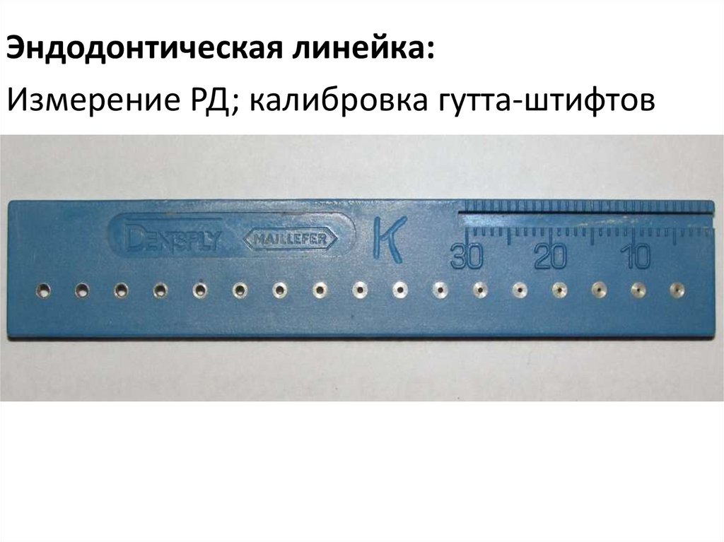 Эндодонтическая линейка:Измерение РД; калибровка гутта-штифтов