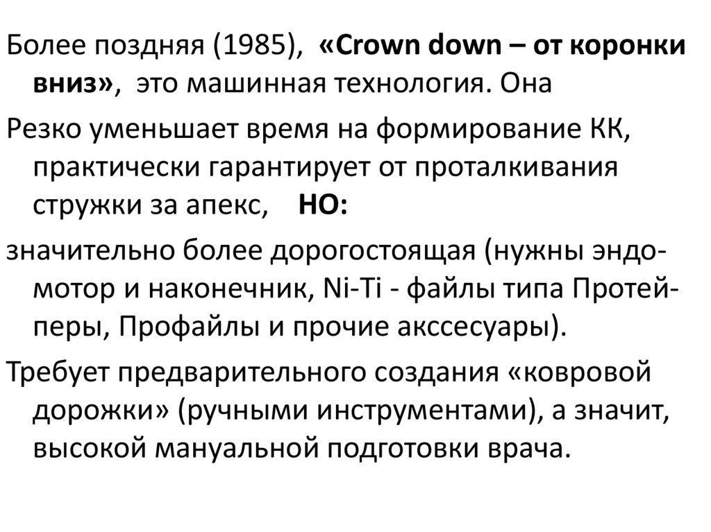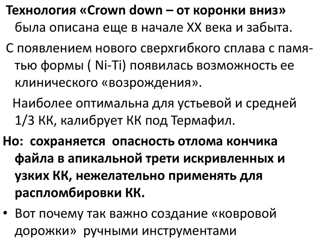 Технология «Crown down – от коронки вниз»была описана еще в начале XX века и забыта.