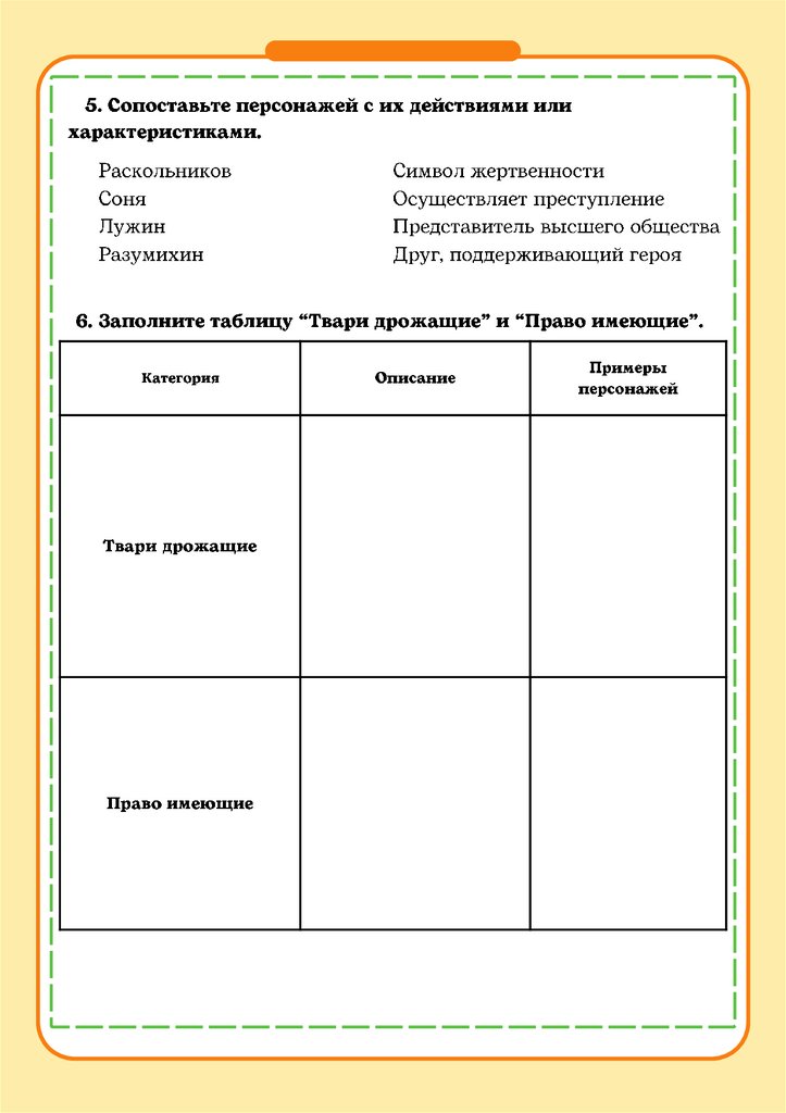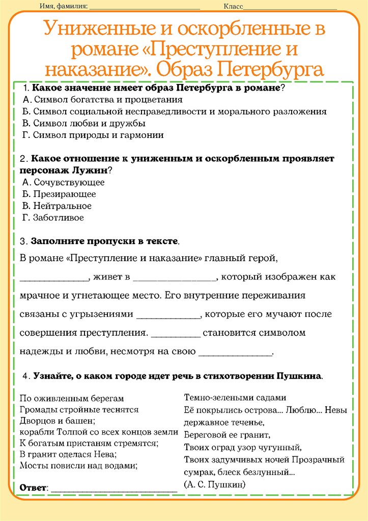 Униженные и оскорбленные рабочий лист