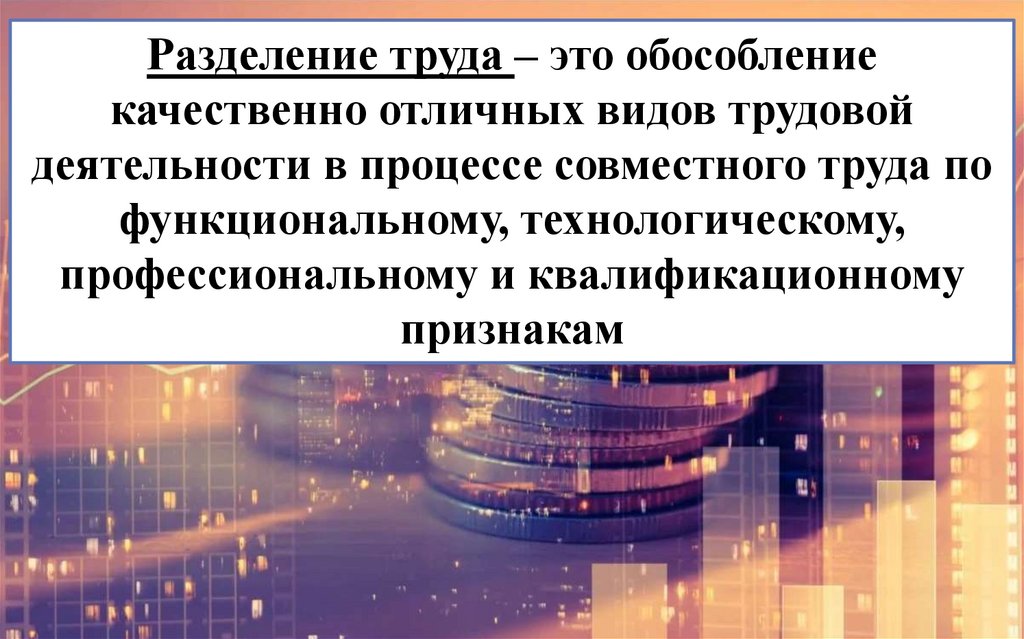 Разделение труда – это обособлениекачественно отличных видов трудовой