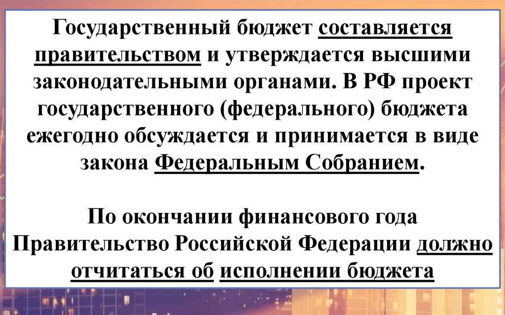 Государственный бюджет составляетсяправительством и утверждается высшими