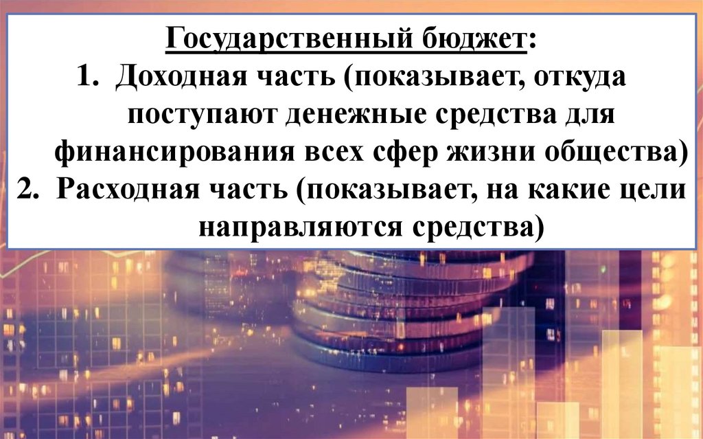 Государственный бюджет:1. Доходная часть (показывает, откуда