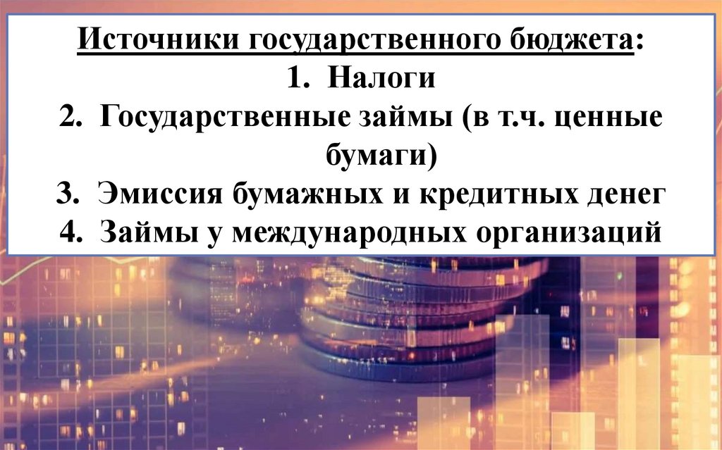 Источники государственного бюджета:1. Налоги