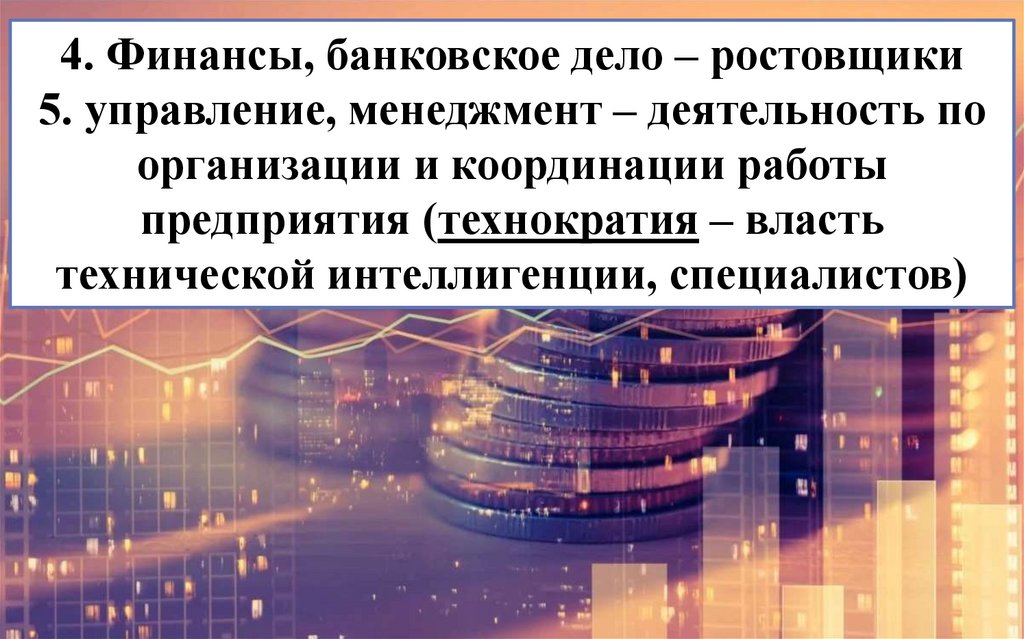 4. Финансы, банковское дело – ростовщики5. управление, менеджмент – деятельность по