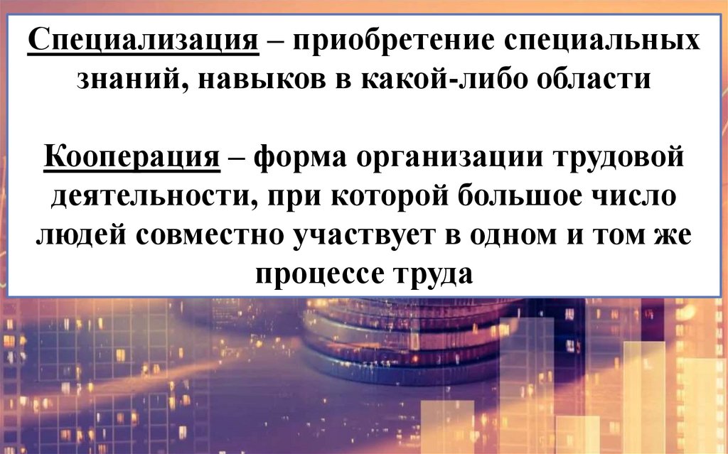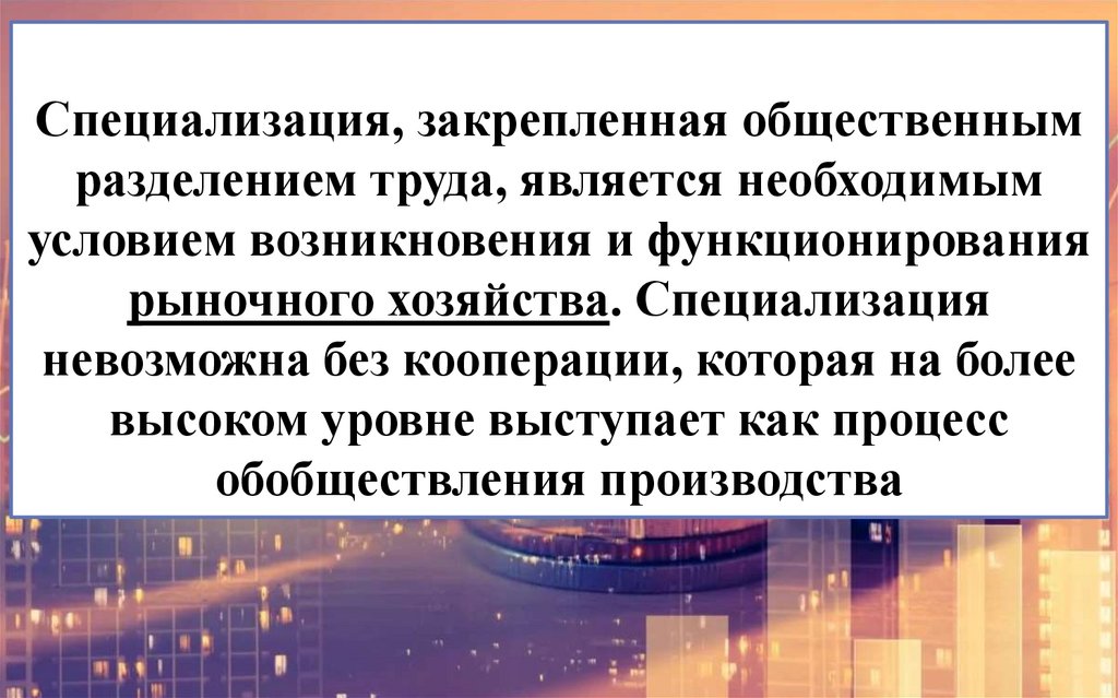 рыночного хозяйства. Специализация