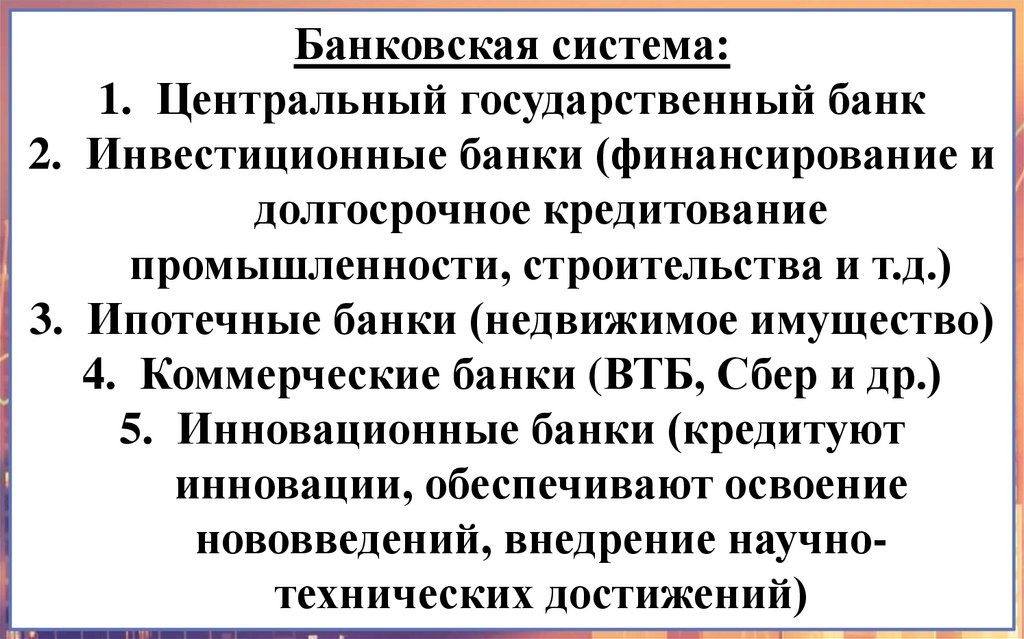 5. Инновационные банки (кредитуют