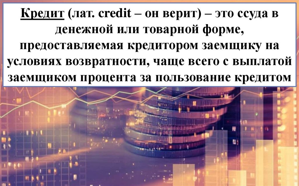 Кредит (лат. credit – он верит) – это ссуда вденежной или товарной форме,