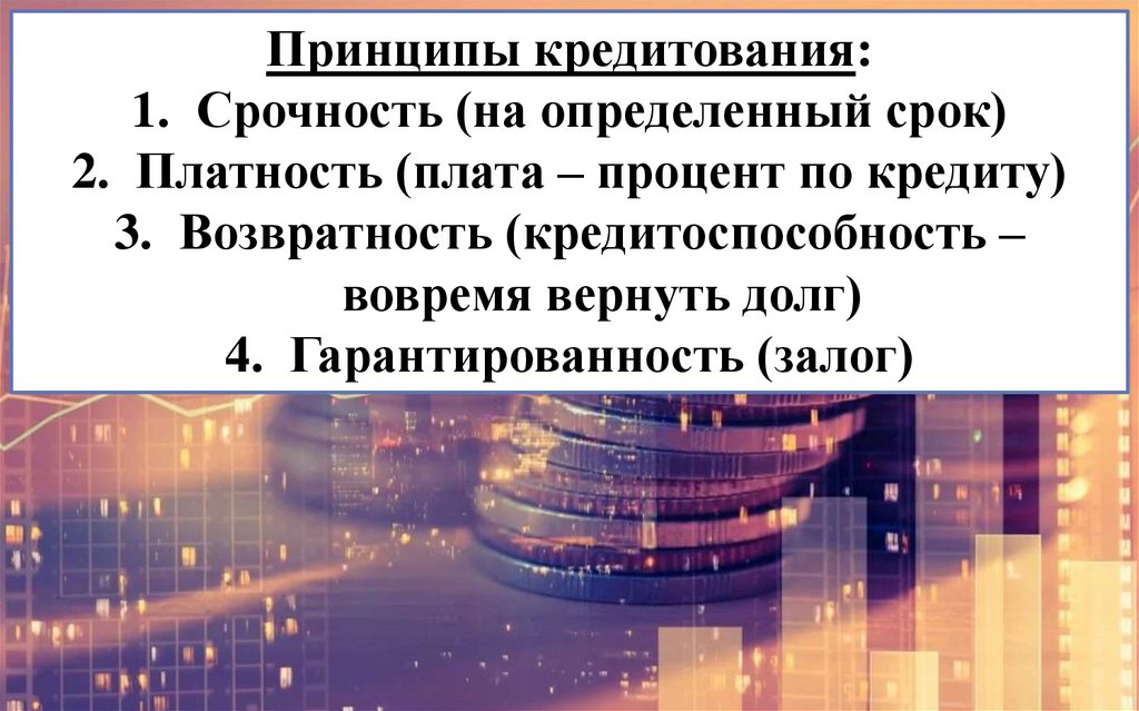 Принципы кредитования:1. Срочность (на определенный срок)