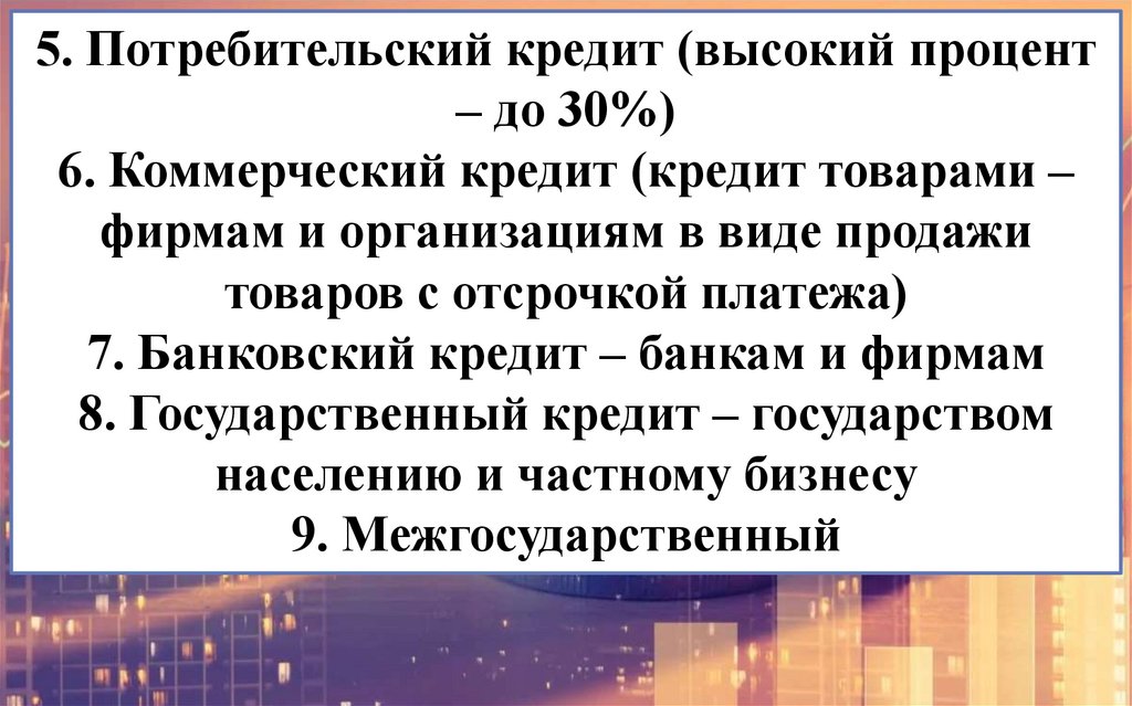 5. Потребительский кредит (высокий процент– до 30%)