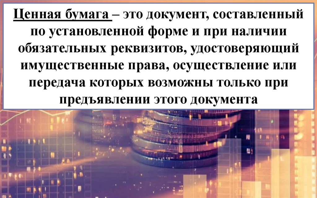 Ценная бумага – это документ, составленныйпо установленной форме и при наличии