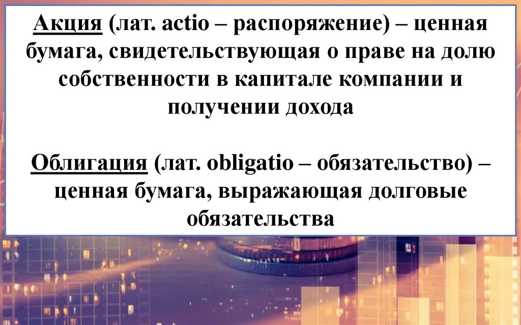 Акция (лат. actio – распоряжение) – ценнаябумага, свидетельствующая о праве на долю