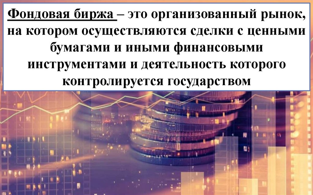 Фондовая биржа – это организованный рынок,на котором осуществляются сделки с ценными