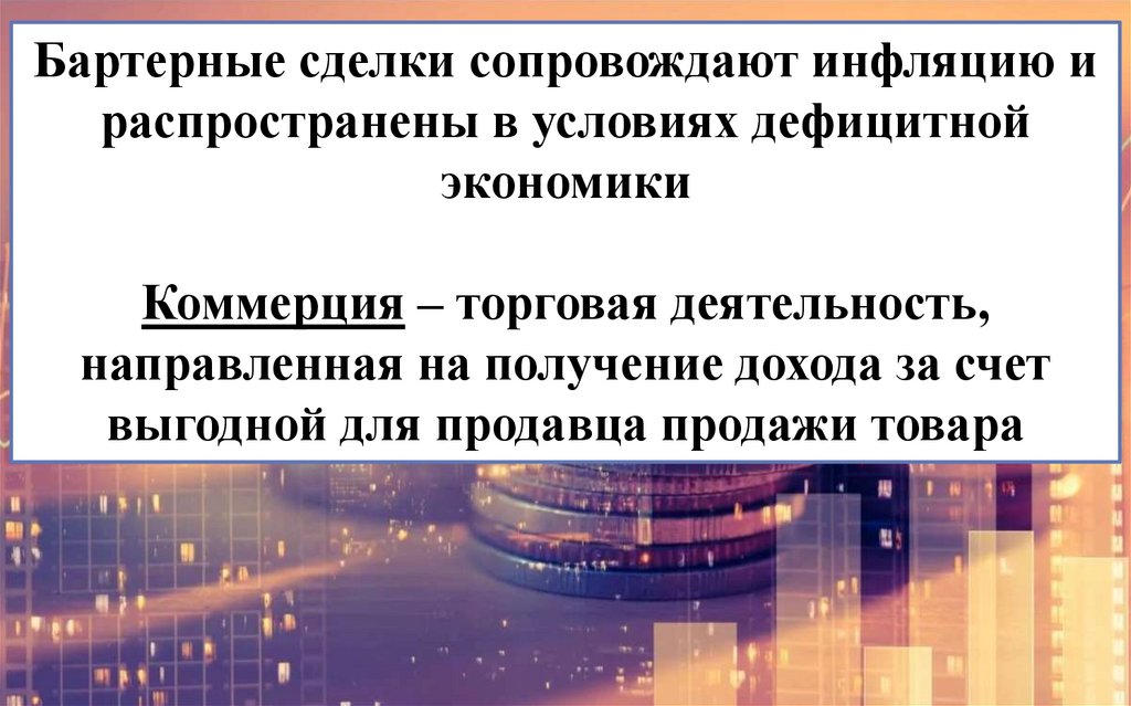 Бартерные сделки сопровождают инфляцию ираспространены в условиях дефицитной