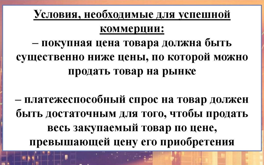 Условия, необходимые для успешнойкоммерции: