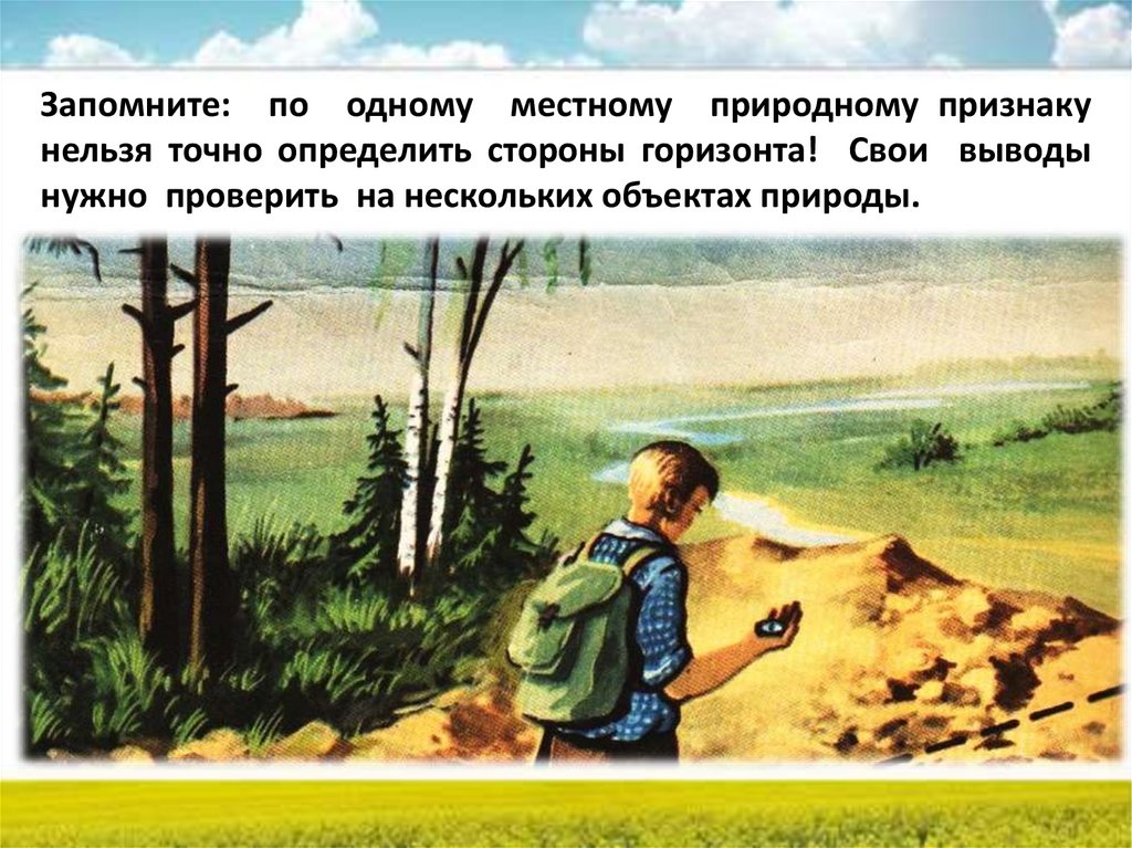 Запомните: по одному местному природному признакунельзя точно определить стороны горизонта! Свои выводы