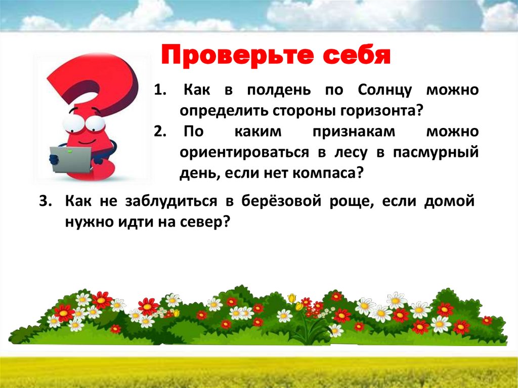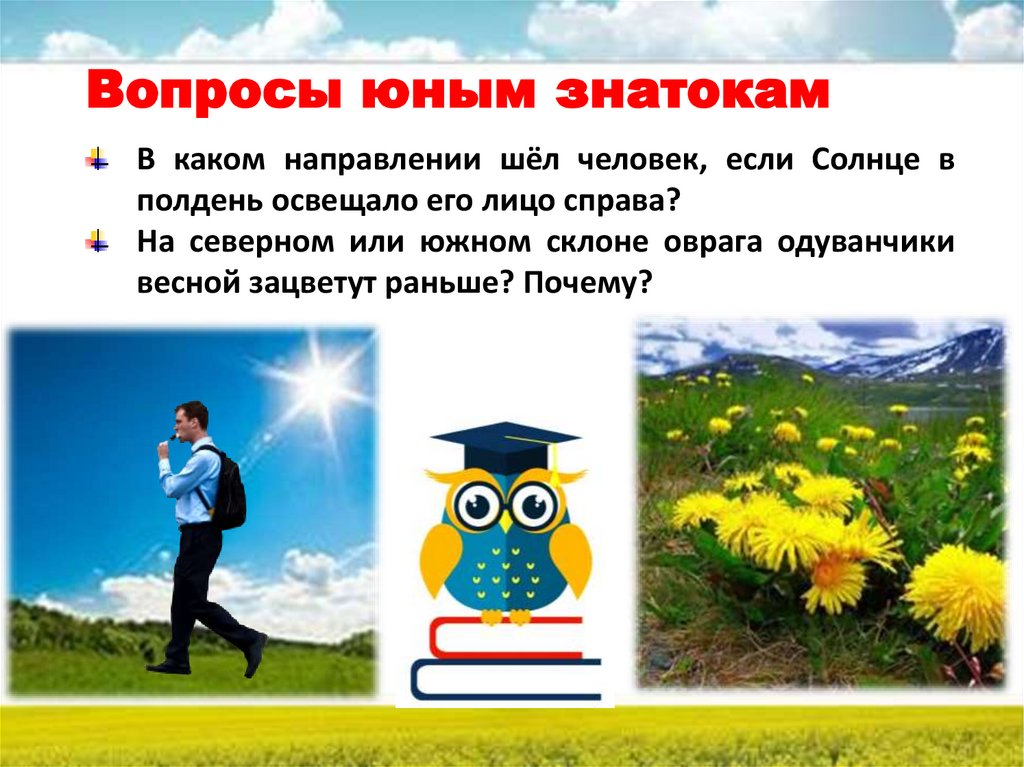 Вопросы юным знатокамВ каком направлении шёл человек, если Солнце в